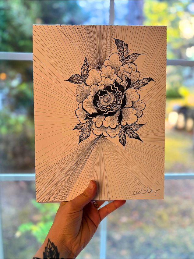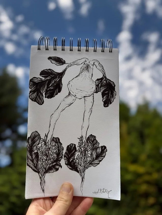 INK ILLUSTRATIONS Exhale |9x12| Smokin' Salmon |9x12| Alraune |5½ x 8½| Peony |9x12| "the most intense of vegetables" |11x14|